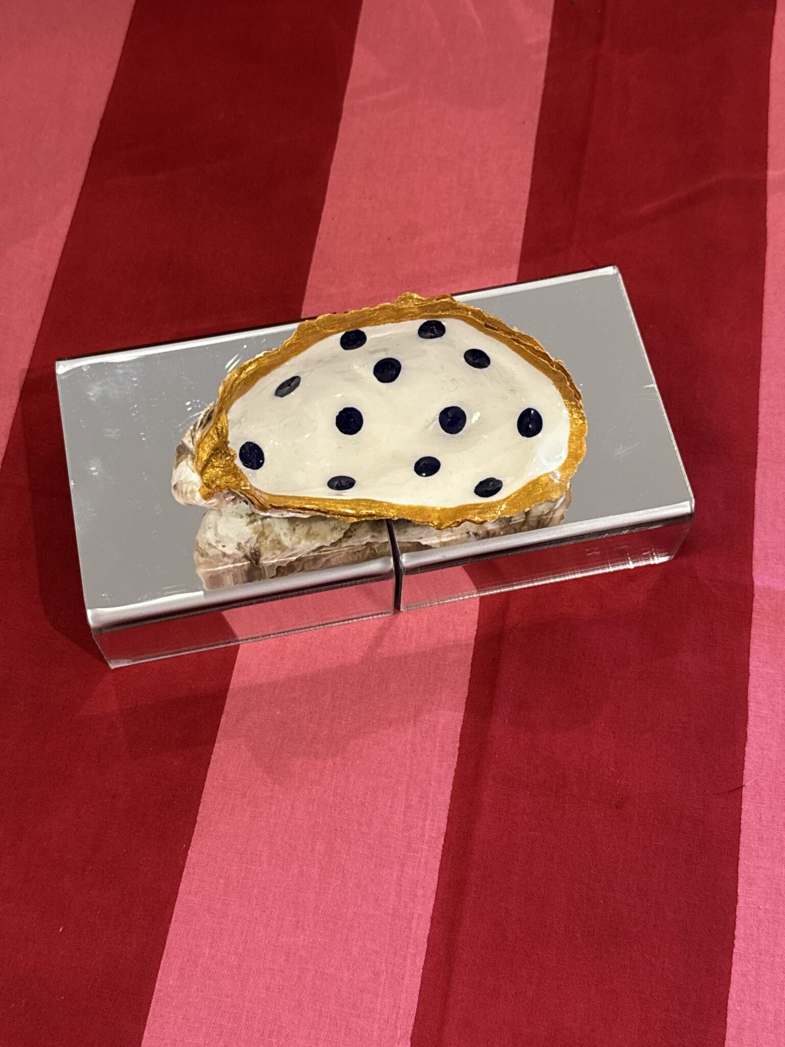 Single creme and blue polka dots